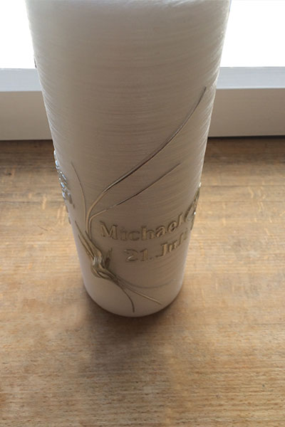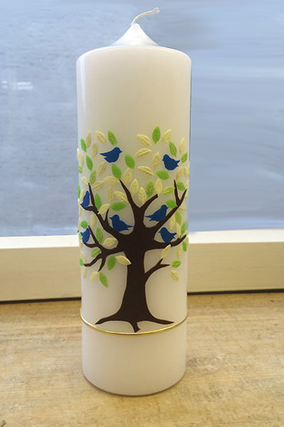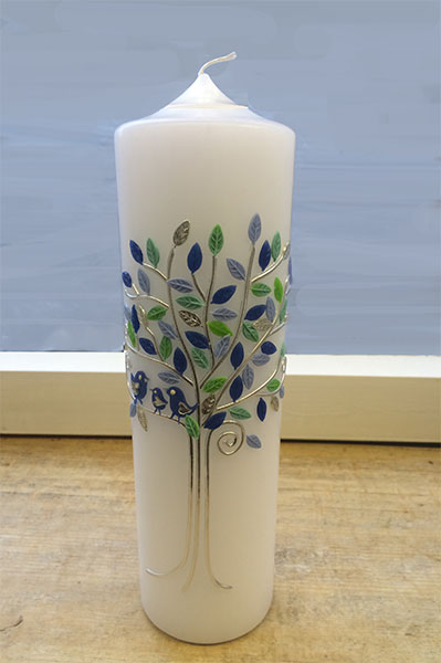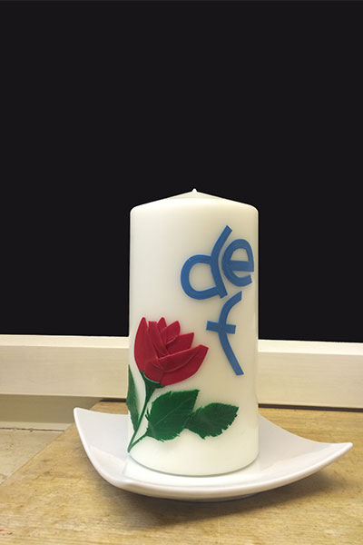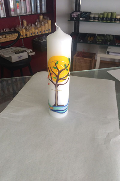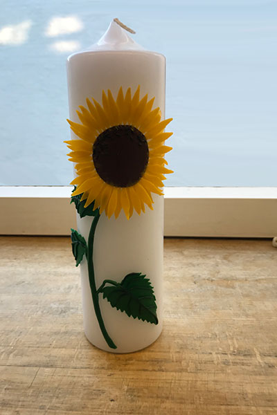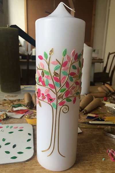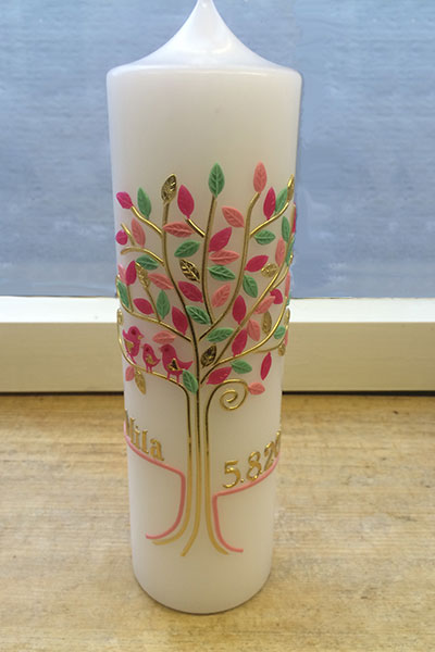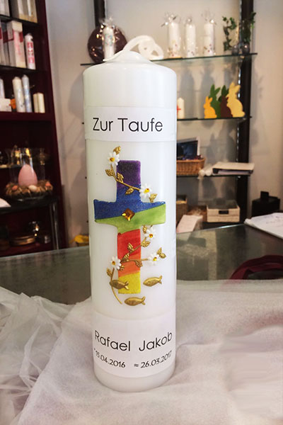In unserer Werkstatt verzieren wir Kerzen individuell nach Ihren Wünschen.
